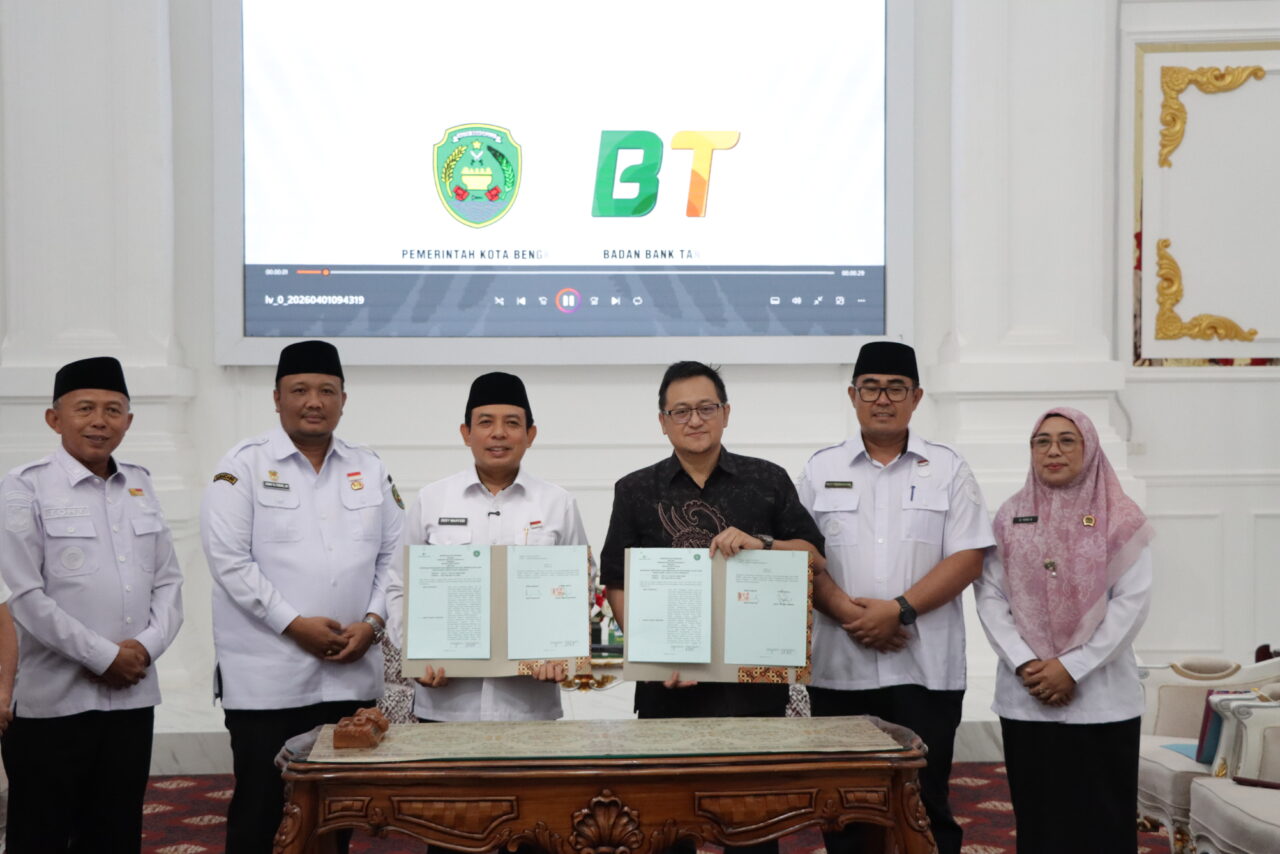 Bengkulu, 1 April 2026 – Badan Bank Tanah bersama Pemerintah Kota Bengkulu secara resmi menandatangani Nota Kesepahaman (MoU) tentang dalam rangka memperkuat sinergi pengoptimalan pemanfaatan tanah dan pengelolaan tanah untuk mendukung pembangunan dan meningkatkan kesejahteraan masyarakat di Kota Bengkulu.